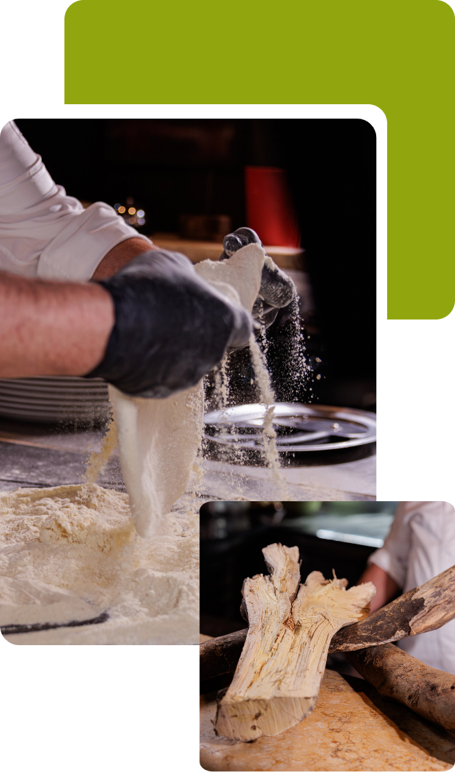 Il nostro forno a legna è alimentato con una selezione di essenze che rendono ogni pizza inconfondibile: ulivo, per un calore intenso e costante, e arancio e limone, per una delicata nota aromatica che profuma ogni cottura.